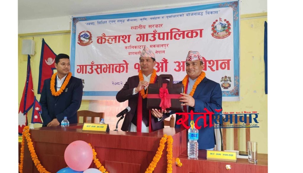 हेटौंडा । मकवानपुरको कैलाश गाउँपालिकाले ५३ करोड ८६ लाखको बजेट प्रस्तुत गरेको छ । गाउँपालिकाका अध्यक्ष लोकबहादुर मुक्तानको सभाध्यक्षतामा मंगलबार भएको १६ औं गाउँसभाको अधिवेशनले नीति तथा कार्यक्रम ल्याएसँगै गाउँसभाले गाउँपालिकाको मुख्य नारालाई आत्मसात् आगामी आर्थिक वर्ष २०८२÷०८३ का लागि बजेट प्रस्तुत गरेको हो । पालिकाका अध्यक्ष लोक बहादुर मुक्तानले पूँजी प्रविधि, सीप र अनुभवलाई स्थानीयस्तरमा उपयोग गर्ने उद्देश्यले युवाहरुलाई लक्षित कृषि कार्यमा उत्प्रेरित गराइने बताए । खानेपानीको एक घर एक धारा नीतिलाई प्राथमिकता दिनुका साथै एक घर एक शौचालय निर्माण गरिने बताए ।