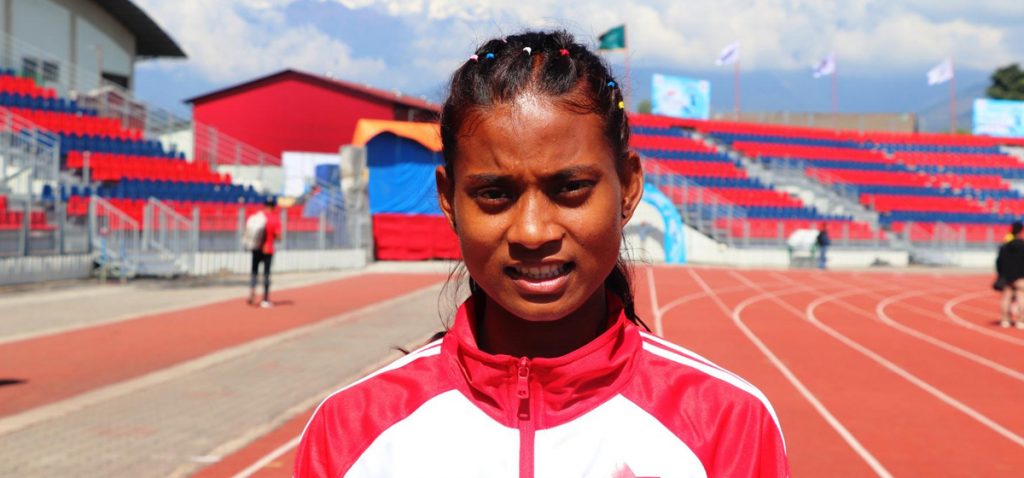 नवौं राष्ट्रिय खेलकुद प्रतियोगिताअन्तर्गत आइतबार पोखरा रङ्गशालामा एथलेटिक्स खेलको चार सय मिटर हडल्स दौड विधामा जयरानी थारुले स्वर्ण पदक जितिन्।