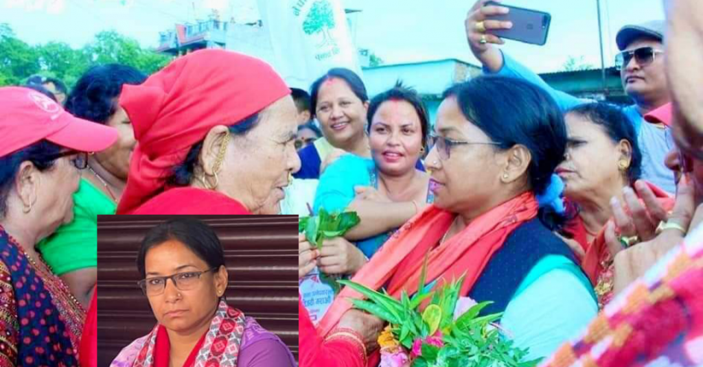 गठबन्धनको तर्फबाट मेयरको उम्मेदवार रेनु दाहाल अघि लागेरहेकी  छन।
