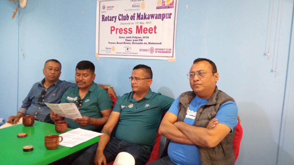 रोटरी क्लब अफ काठमाडौं मिडटाउन र रोटरी क्लब अफ मकवानपुरको संयुक्त आयोजनामा मंगलबारबाट मकवानपुर, रौतहट, सिन्धुली र सर्लाहीमा भएको निशुल्क आँखा शिविरमा मंगलबार हिमाली बास रौतहटमा २४८ जना आखा परिक्षण गर्दा ४८ जनामा मोतिबिन्दुका बिरामी भेटिएका थिए र सिन्धुलीमा १ सय ४२ जनाको आखा परिक्षण गर्दा २५ जना मोतिबिन्दुका बिरामी भेटिएका थिए भने बुधबार नाढी चन्द्रजगर सर्लाहीमा १३८ जना परिक्षण गर्दा ३६ जनामा मोतिबिन्दु देखिएको र पिपलमाडी सिन्धुलीमा २ सय ५० जनाको आँखा परिक्षण गर्दा ४० जना मोतिबिन्दुका बिरामी भेटिएका थिए त्यसैगरी बिहीबार मकवानपुरको कैलाशमा १सय ७२ जनाको आँखा परिक्षण गर्दा १२ जना मोतिबिन्दुका बिरामी र बनबहुरी ७ रौतहटमा भएको शिविरमा २ सय ३८ जनाको आँखा परिक्षण गरिएकोमा ६२ जनामा मोतिबिन्दु भेटिएको संयोजक पराजुलीले बताएका छन । मकवानपुर, रौतहट, सिन्धुली र सर्लाहीमा भएको शिबिरबाट २२३ जना मोतिबिन्दुका बिरामी भेटिएकाेमा २०० जना मोतिबिन्दुका बिरामीको यही मिति १९ र२० गते हेटौंडा आँखा अस्पतालमा निशुल्क शल्यक्रिया भएको कार्यक्रम संयोजक अन्जनी पराजुलीले जानकारी दिएका छन । उनीहरुको यातायात खर्च, बस्ने खाने खर्च रोटरी क्लबले व्यहोर्ने संयोजक पराजुलीले बताए । पराजुलीका अनुसार शिविरमा हेटौंडा आँखा अस्पतालले प्राविधिक सहयोग गरेको छ भने रोटर्याक्ट क्लब अफ मकवानपुरले पनि आवश्यक सहयोग गरीएको शिबिर आयोजकले बताएका छन।