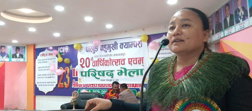 वार्षिकोत्सवको अवसरमा पालुङ क्याम्पसका प्रथम व्याचका विद्यार्थी नानुमैया प्रधानलाई विद्यावारिधी (पिएचडी) को तयारी गरिरहेको भन्दै सम्मान गरिएको थियो ।