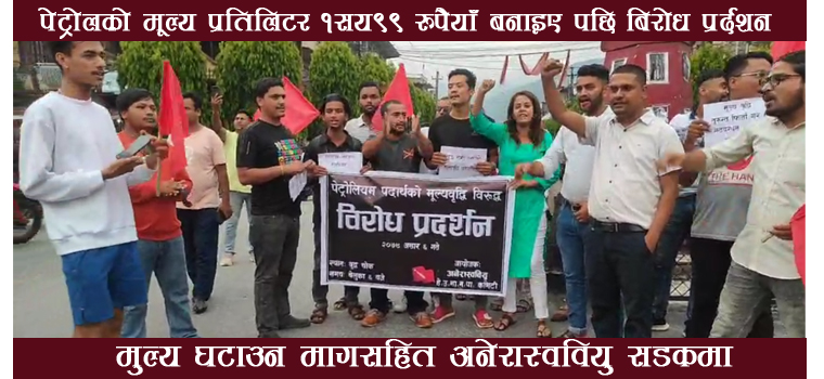नेपाल आयल निगमले पेट्रोलियम पदार्थको मूल्यमा लगातार वृद्धि गरेपछि बिभिन्न स्थानमा बिरोध भएको छ ।