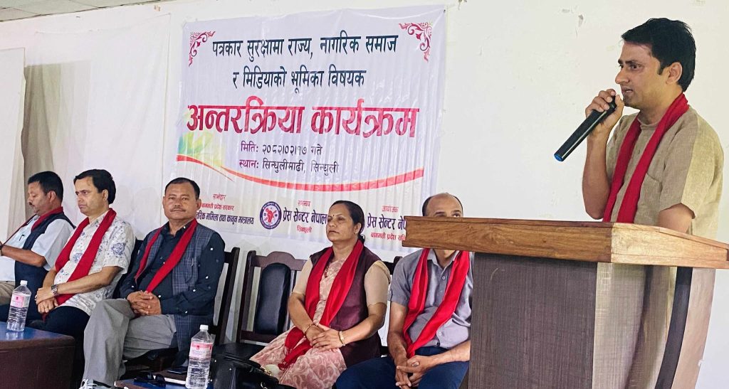 हेटौंडा । प्रेस सेन्टर बागमती प्रदेशको आयोजनामा पत्रकार सुरक्षामा राज्य, नागरिक समाज र सञ्चारमाध्यमको भूमिकाबारे अन्तरक्रिया कार्यक्रम गरिएको छ ।