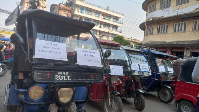 राष्ट्रिय प्रजातान्त्रिक यातायात मजदुर संघ जिल्ला कार्यसमिति मकवानपुरले तीनपाङ्ग्रे सवारी व्यवस्थापनको माग गर्दै बिरोध र्याली प्रदर्शन गरेको छ । शुक्रबार मजदुरहरुले अटो तथा मयूरीमा आफ्ना मागहरु लेखिएको प्लेकार्ड टाँसगरी हेटौंडा नगर क्षेत्रमा र्यालीसहित बिरोध प्रदर्शन गरेका हुन् ।