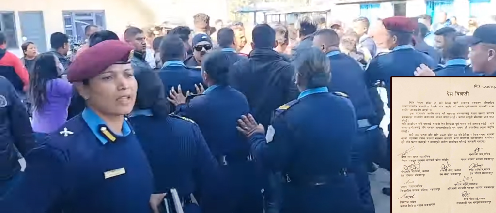 प्रहरी कार्यालय परिसरभित्र पत्रकारहरुमाथि पत्रकारिता पेशामै आँच आउने गरी भएको दुव्र्यवहार सम्बन्धमा आपत्ती जनाइएको हो ।