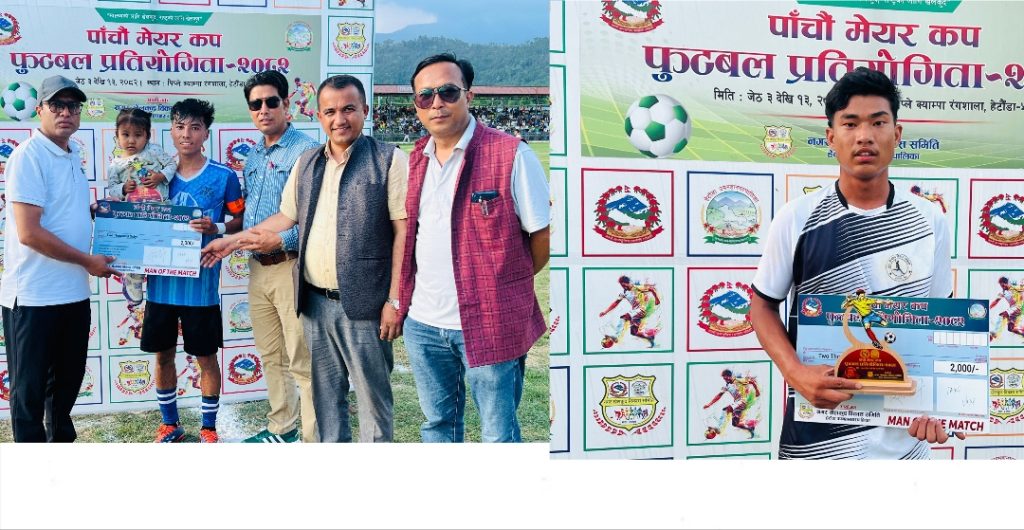 हेटौंडा । हेटौंडामा जारी पाँचौं संस्करणको मेयरकप फुटबल प्रतियोगितामा अन्तर्गत क्वार्टरफाइनलको खेल सुरु भएको छ । आइतबारबाट हेटौंडा–५,स्थित पिप्ले–क्याम्पा रंगशालामा सुरु भएको पहिलो क्वार्टरफाइनल खेलमा जीत निकाल्दै हेटौंडा–३ र हेटौंडा–१५ सेमीफाइनलमा प्रवेश गरेको छ । पहिलो क्वार्टरफाइनल चरणको खेलमा हेटौंडा–८ लाई ३–१ गोलले हेटौंडा–३ ले पराजित गरेको छ । हेटौंडा–३ को तर्र्फबाट विजय दोङले २ गोल गरेका थिए भने राहुल तामाङले आत्माघाती गोल गरे । यस्तै हेटौंडा–८ को तर्फबाट विजय दोङले १ गोल गरेपनि टिमलाई हारबाट जोगाउन सकेन्न् । खेलको म्यान अफ द म्याच विजय दोङ घोषित भएका छन् ।