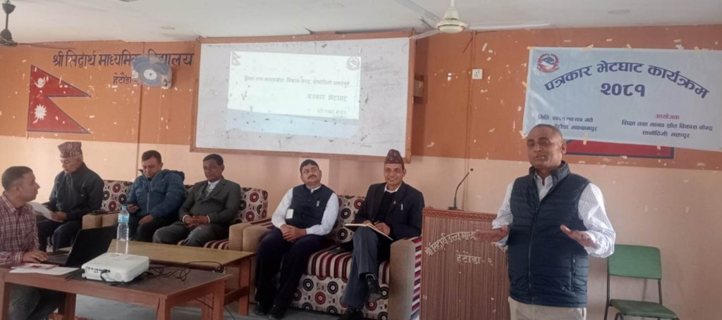हेटौडा राष्ट्रिय परीक्षा बोर्ड प्रमुख कृष्णप्रसाद घिमिरे, शिक्षा विकास तथा समन्वय इकाई मकवानपुर प्रमुख सुदिप गिरी, शिक्षा विकास महाशाखाका हेटौडा उपमहानगरप्रमुख हरिचन्द्र सापकोटा, पत्रकार महाँसंघ मकवानपुर अध्यक्ष बालकृष्ण अधिकारी लगायतको उपस्थितीमा अन्तरक्रिया गरिएको हो ।