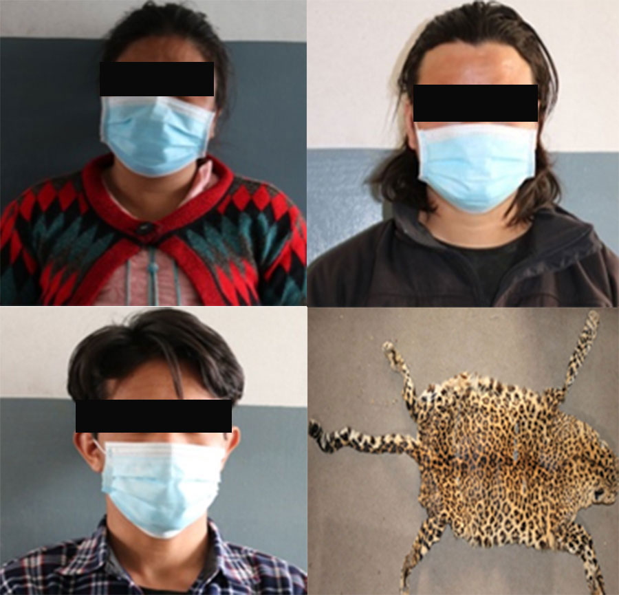 काठमाडौँको टोखा नगरपालिका–१० गोङ्गबुबाट संरक्षित वन्यजन्तु हिउँ चितुवाको छालासहित तीन जनालाई प्रहरीले पक्राउ गरेको छ ।