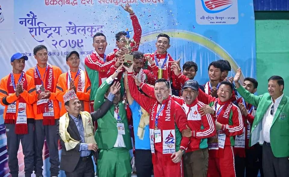नवौं राष्ट्रिय खेलकुद प्रतियोगिता अन्तरगत सफ्ट टेनिस प्रतियोगितामा नेपाल प्रहरी र सशस्त्र प्रहरीको एपीएफ क्लवले स्वर्ण पदक जितेका छन्।