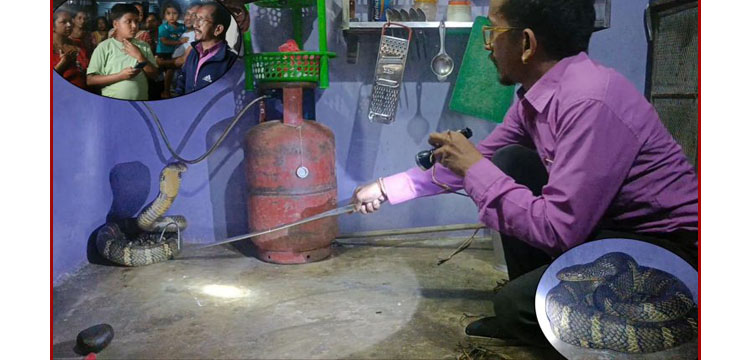 शुक्रबार मकवानपुरका सर्प उद्दारकर्ता राजेश थापा “गरिब” ले हेटौंडा वडा नम्बर–९, वडा कार्यालयमा कार्यरत आशिष खतिवडाको मामाघरबाट करिब १२ फिट लामो किङ्ग कोब्राको सकुशल उद्दार गरेका हुन् ।