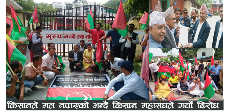 मल अभावका कारण किसान मारमा परेतापनि प्रदेश सरकारले चासो नदिएको भन्दै किसान महासंघ बागमती प्रदेश कमिटीले बागमती प्रदेशका मुख्यमन्त्री राजेन्द्र प्रसाद पाण्डेको राजिनामा माग गर्दै मंगलबार मुख्यमन्त्री कार्यालय अगाडी विरोध प्रर्दशन गर्दै धर्ना दिएर बिरोध गरेको हो ।