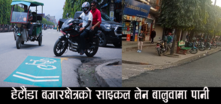 हेटौंडाको मुख्यबजार क्षेत्र बुद्धचोकदेखि पूर्व–पश्चिम, उत्तर–दक्षिण चारैतर्फ सांकेतिक रुपमा साइकल लेखनको साइकल लेनमाथिनै कालोपत्रे सुरु गरेपछि लेन गाएब भएको छ ।