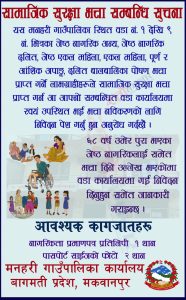 सामाजिक सुरक्षा भत्ता पाईरहेका र नँया हरुकालागि पाउन सहज गराउन भन्दै सुचना जारी गरिरहेको छ ।