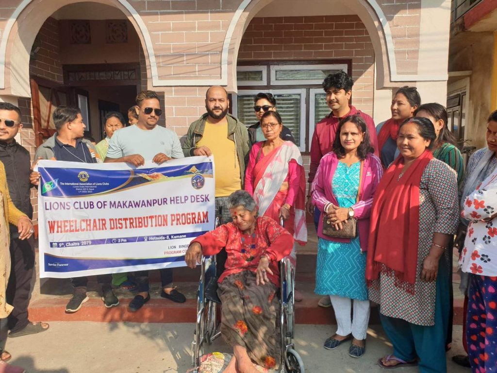 लायन्स क्लब अफ मकवानपुर हेल्प डेस्कको संयोजनमा ६५ वर्षीया वृद्धालाई ह्विलचियर प्रदान गरिएको छ ।