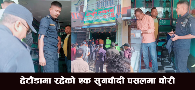 हेटौंडा उपमहानगरपालिका २ स्थित रहेको आयुष ज्वेलर्स (सुनचाचँदी) पसलमा चोरी भएको छ ।