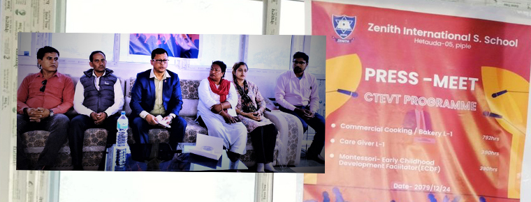 बागमती प्रदेशको राजधानी रहेको हेटौंडा ५ पिप्लेमा रहेको जेनिथ ईन्टरनेशनल सेकेन्डरी बोर्डिङ स्कुलले सिटिईभिटीका कार्यक्रमहरु गर्ने भएको छ ।