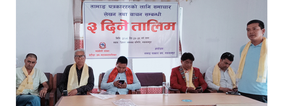 तामाङ पत्रकार संघ मकवानपुरको आयोजनामा ३ दिवसीय समाचार लेखन तथा वाचन तालिम सुरु भएको छ ।