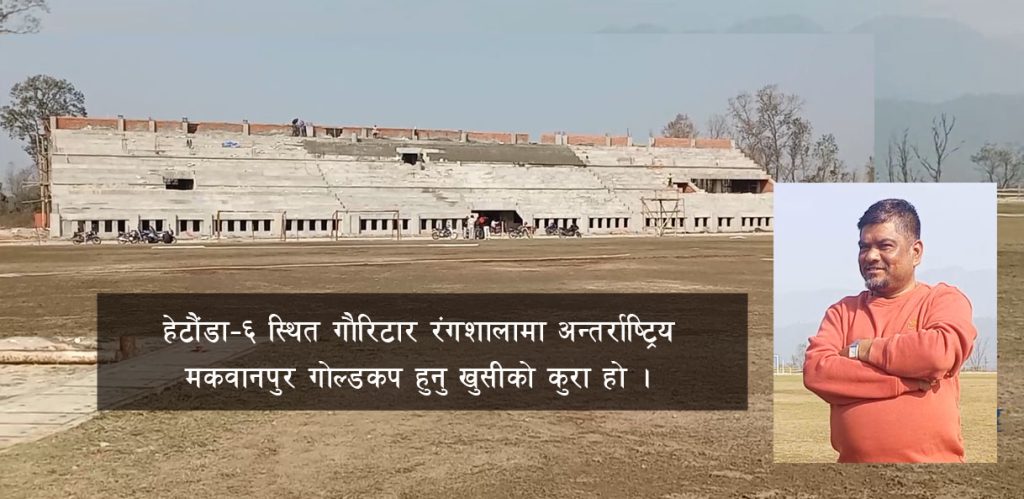 जिल्ला फुटबल संघ मकवानपुरको आयोजनामा माघ १६ गतेदेखि स्थानीय तह छैठौं सहिद स्मृति अन्तर्राष्ट्रिय मकवानपुर गोल्डकप फुटबल प्रतियोगिताका सम्पन्न गर्नका लागि हेटौंडा–६ स्थित गौरिटार रंगशाला खेलमैदान व्यवस्थापनमा आयोजक पक्षहरु खटिरहेका छन् ।
