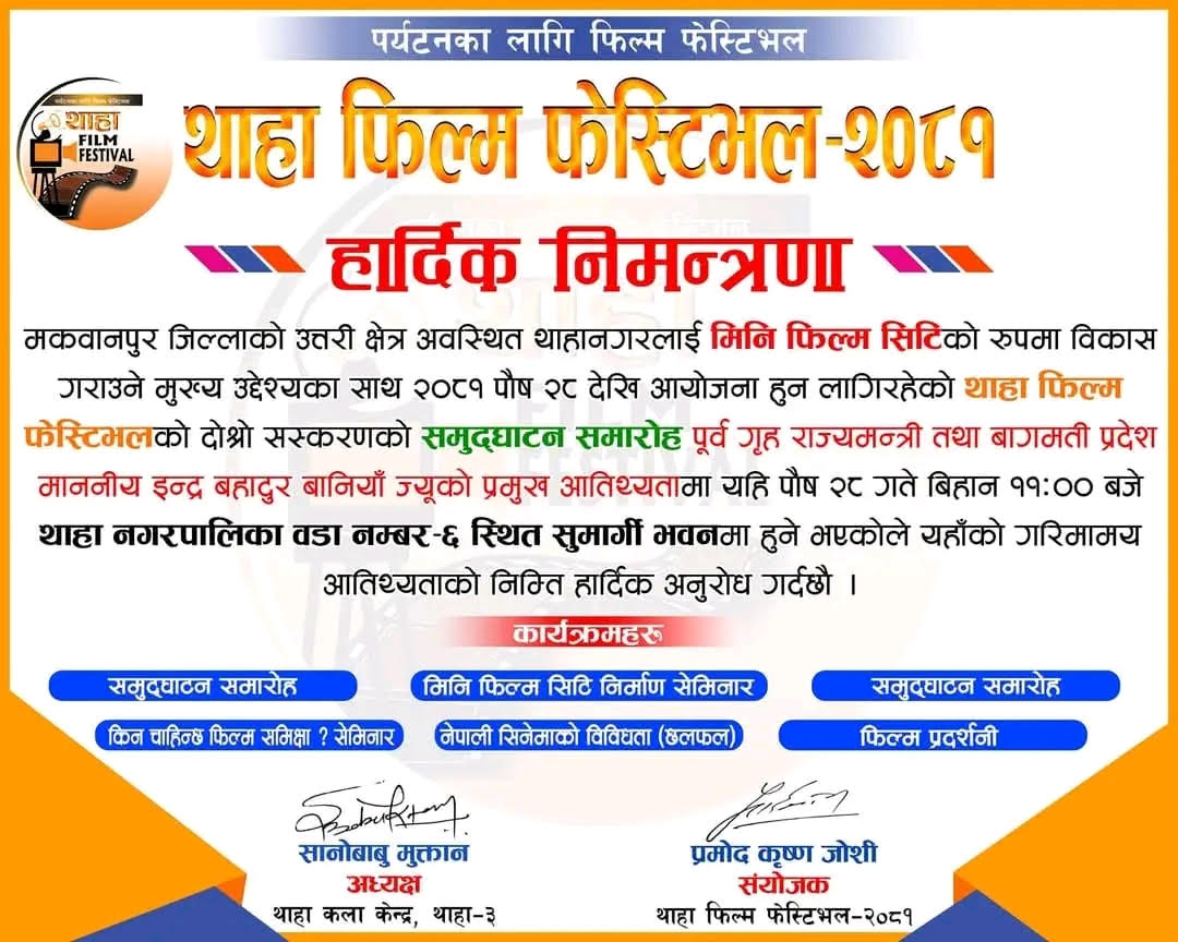थाहा फिल्म फेष्टिभल आजबाट सुुरु हुँदै