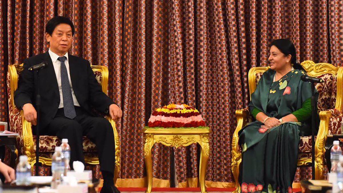 चिनियाँ नेताली राष्ट्रपति भण्डारीसँग भेटवार्ता गर्दै