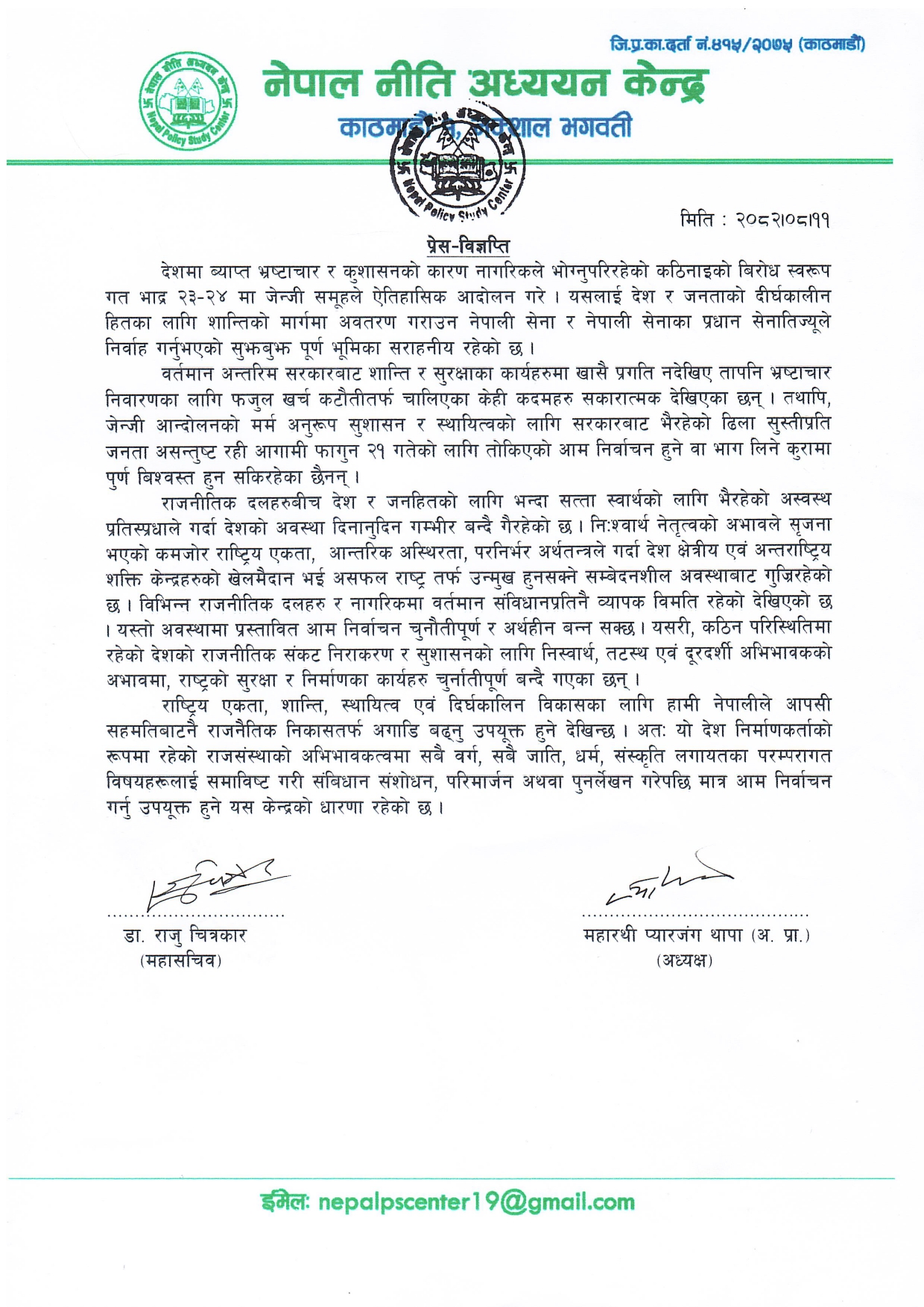 भ्रष्टाचार र कुशासनले देश गम्भीर संकटतर्फ: नेपाल नीति अध्ययन केन्द्रको चेतावनी