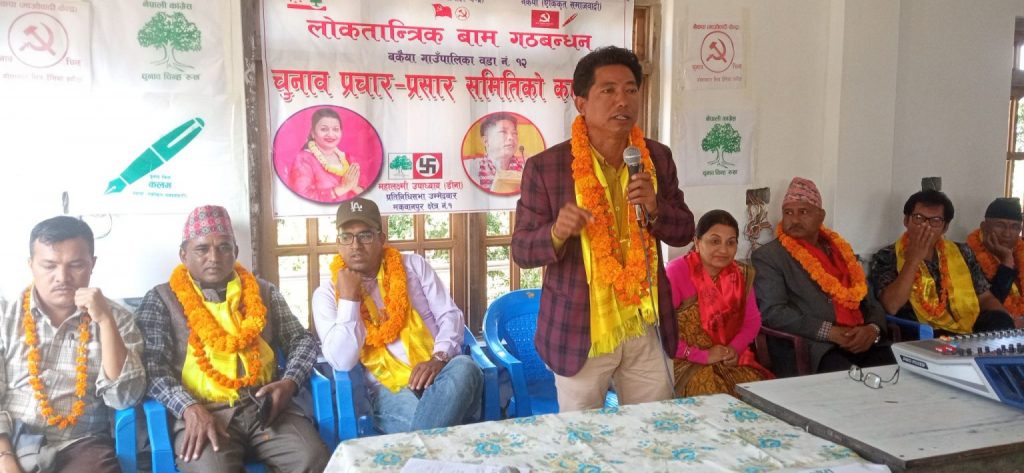लोकतान्त्रिक बामगठबन्धन निर्वाचन परिचालन समिति बकैया वडा नम्बर १२ का संयोजक संजय डिम्डुङको अध्यक्षतामा कार्यक्रम भएको हो ।