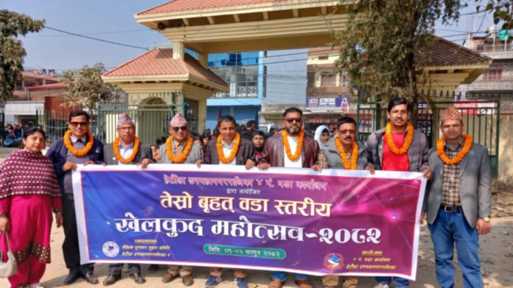 हेटौंडा । हेटौंडा उपमहानगरपालिका वडा नम्बर–४ को आयोजनामा तेस्रो संस्करणको बृहत् वडास्तरीय खेलकुद महोत्सव सुरु भएको छ । वडा नम्बर–४ को शैक्षिक गुणस्तर सुधार समितिको आयोजनामा हेटौंडा–४,स्थित हुप्रचौरमा सुरु भएको तेस्रो वडास्तरीय खेलकुद महोत्सवको उद्धाटन संविधान सभा सदस्य अन्नतप्रसाद पौडेलको प्रमुख आतिथ्यमा तथा शैक्षिक गुणस्तर सुधार समितिका संयोजक श्रीराम दहालको सभाध्यक्षमा भएको हो । वडास्तरीय खेलकुद महोत्सवमा नगरस्तरीय, फुटबल, भलिवल, क्रिकेट, बाँस्केट बल, वडास्तरमा टक अफ वार, एथलेटिक्स, हाजिरी जवाफ, वक्तृत्वकला, हिज्जे, बादविवाद, कविता, क्वीच प्रतियोगिता सञ्चालन भएको थियो ।