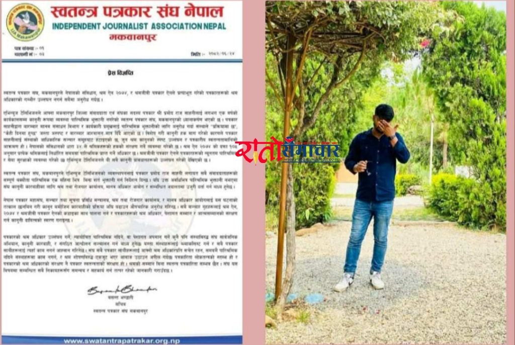 हेटौंडा | एभिन्युज टेलिभिजनले आफ्ना मकवानपुर जिल्ला संवाददाता प्रमोद राज साहनीलाई करिब एक वर्षदेखि पारिश्रमिक भुक्तानी नगरेको भन्दै स्वतन्त्र पत्रकार संघ मकवानपुरले आपत्ति जनाएको छ। संघले शुक्रबार जारी गरेको विज्ञप्तिमा उक्त टेलिभिजनलाई एक महिनाभित्र सम्पूर्ण बक्यौता पारिश्रमिक भुक्तानी गर्न अल्टिमेटम दिएको छ।