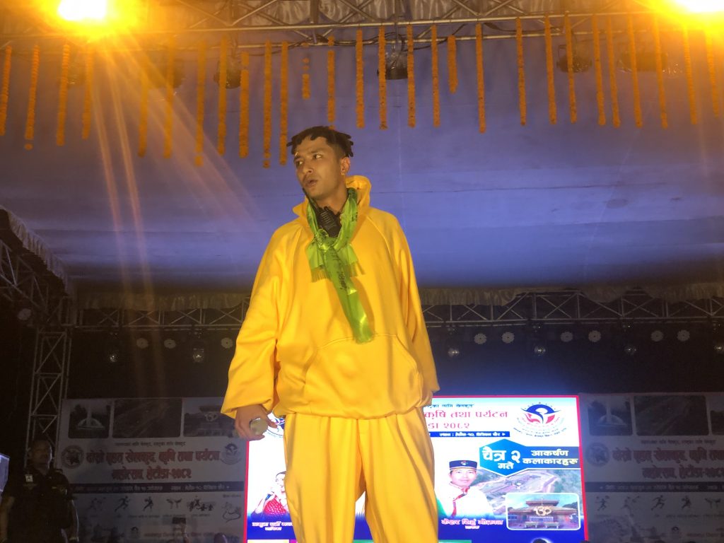 हेटौंडा । जिबबको र्‍याप सुन्न दर्शहरुको लागेको छ । मकवानपुर जिल्ला खेलकुद विकास समितिको आयोजनामा हेटौंडा-१०,स्थित टिसीएन चौरमा जारी महोत्सवको तेस्रो दिन चर्चित र्‍यापर जिबबले आफ्नो र्‍यापको प्रस्तूति गरेका थिए । र्‍यापर जिबबको प्रस्तूतिमा दर्शकहरुको उल्लेखनीय रुपमा ओइरो लागेको थियो ।