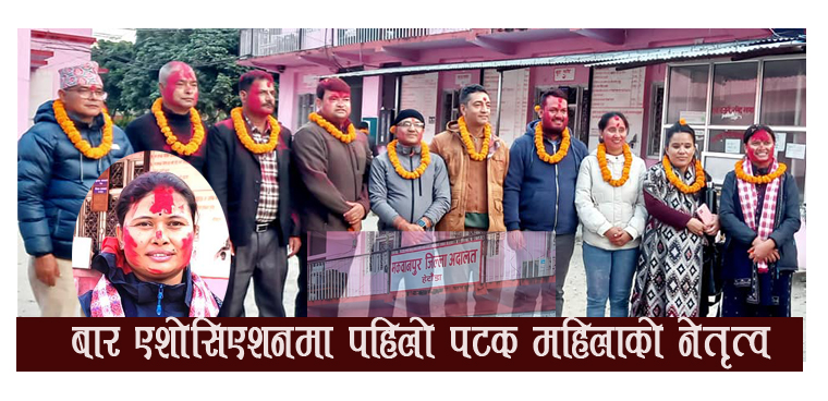 बारको अध्यक्षको प्रतिद्धन्दि ऋषि केबीलाई ३ मतान्तरले पराजित गर्दै पहिलो पटक महिला अधिवक्ताले बारको नेतृत्व गर्ने भएकी हुन् ।