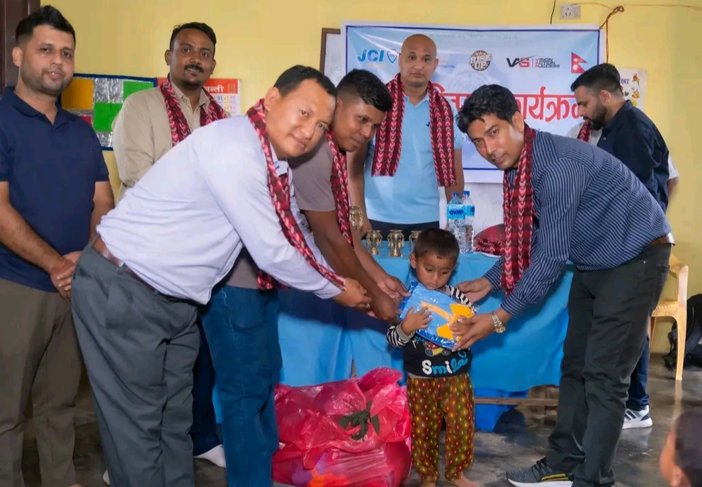 हेटौंडा । हेटौंडा उपमहानगरपालिका वडा नम्बर–१,स्थित भैरव आधारभूत विद्यालयमा जेसिआई हेटौंडाले पोशाक वितरण गरेको छ । शुक्रबार जेसिआई हेटौंडा वर्ष २०२५ का अध्यक्ष पंकज दास बानियाँ सहितको टोली विद्यालयमै पुगेर ४३ सेट टि—सर्ट तथा टाउजर वितरण गरेको हो । हेटौंडा–१ का वडाध्यक्ष सविन न्यौपानेको प्रमुख आतिथ्यमा तथा जेसिआईका अध्यक्ष पंंकज दास बानियाँको सभाध्यक्षमा सामाग्री हस्तान्तरण कार्यक्रम भएको हो । कार्यक्रमलाई सृजन बज्राचार्यले संयोजन गरेका थिए ।