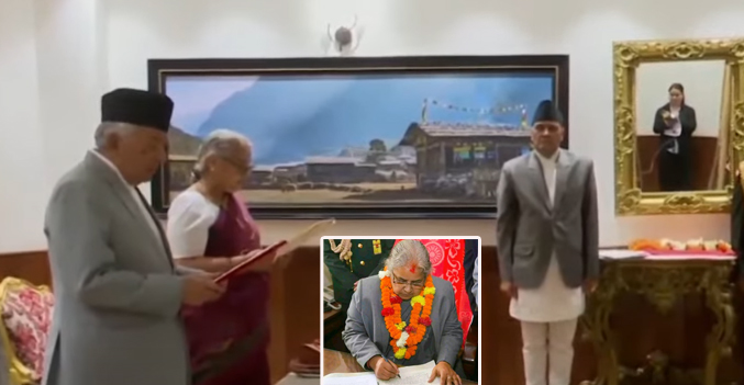 हेटौंडा । नेपाल सरकारको नयुनियुक्त पहिलो महिला प्रधानमन्त्री सुशीला कार्कीले पद तथा गोपनीयताको शपथ लिएकी छिन् । शुक्रबार संसद् विघटनपछि सर्वसम्मत नेपालको पहिलो महिला प्रधानन्यायाधीश समेत रहेकी सुशीला कार्की प्रधानमन्त्रीमा नियुक्त भएपछि राष्ट्रपति पौडेलले पद तथा गोपनीयताको शपथ ग्रहण गराएका हुन् ।
