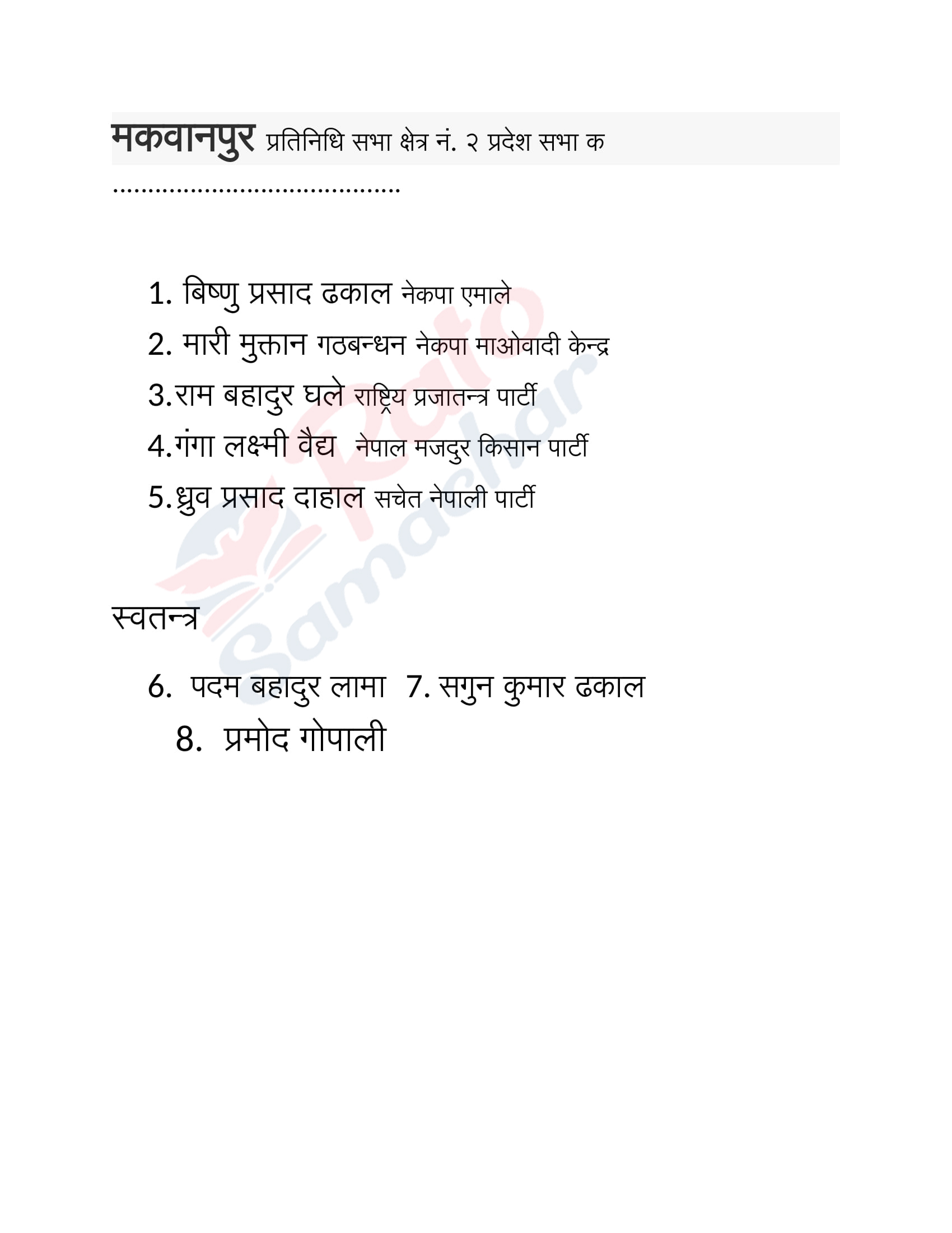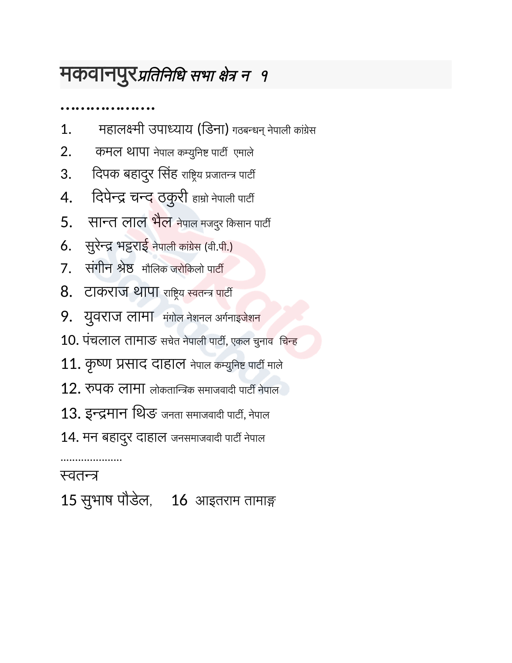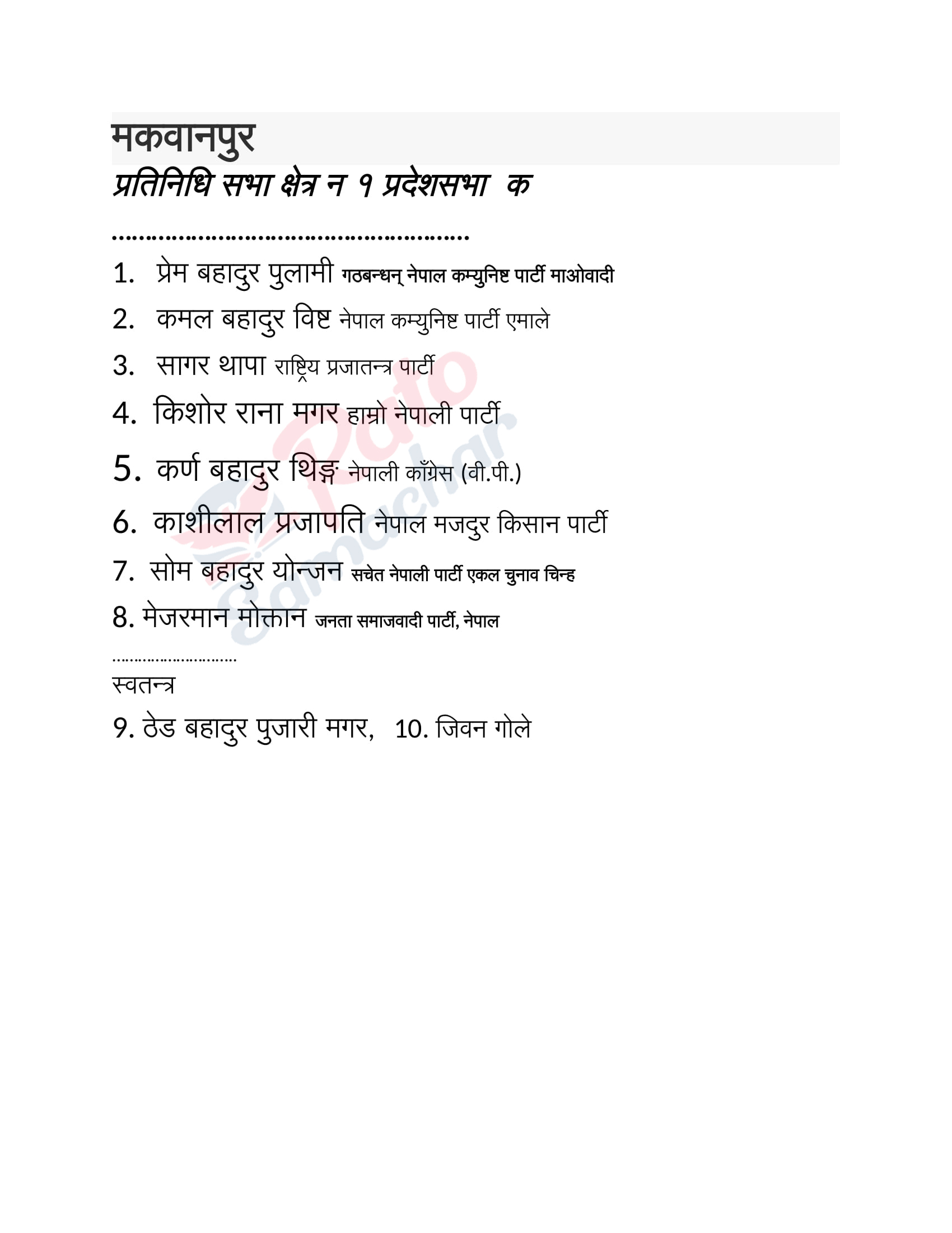 निर्वाचन : मकवानपुरमा उम्मेदवार