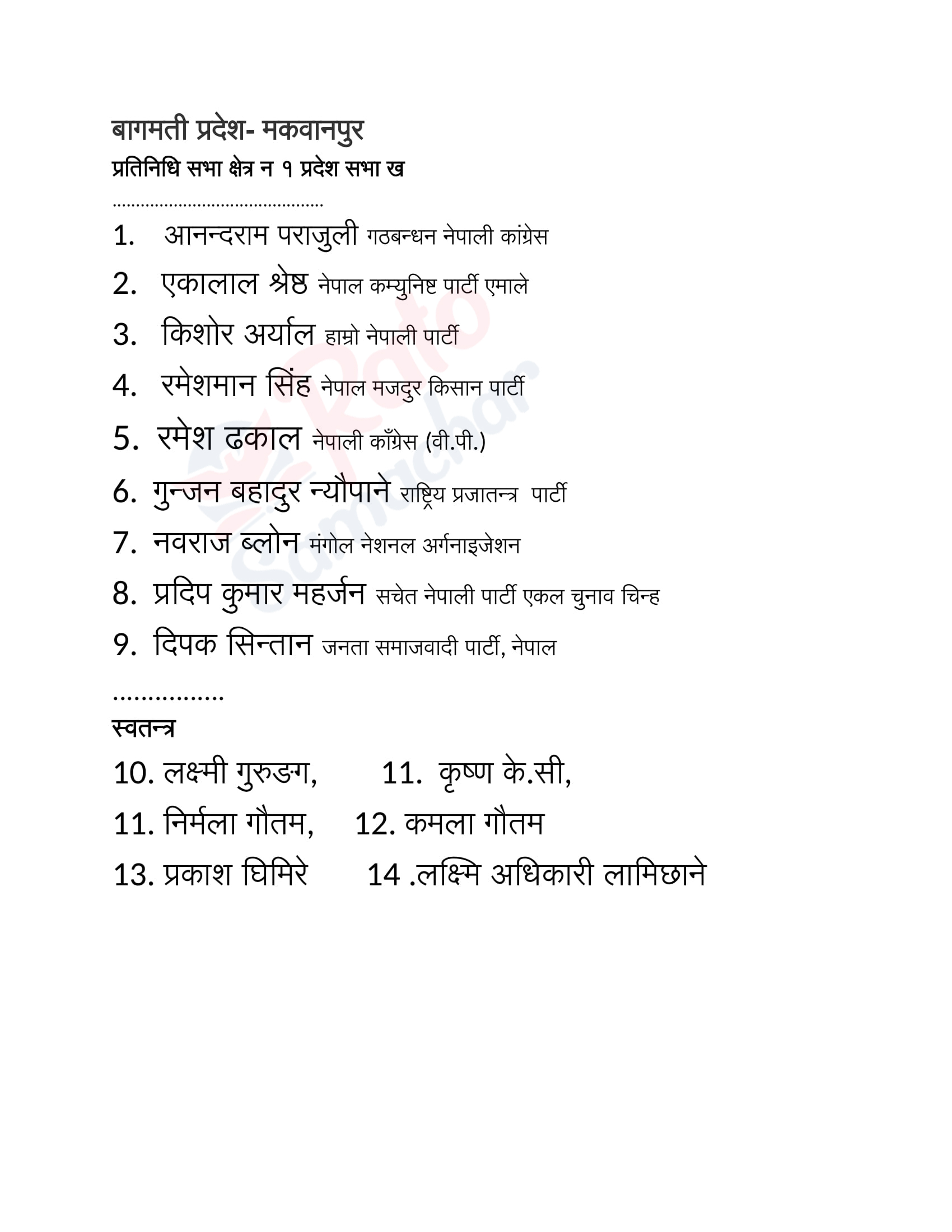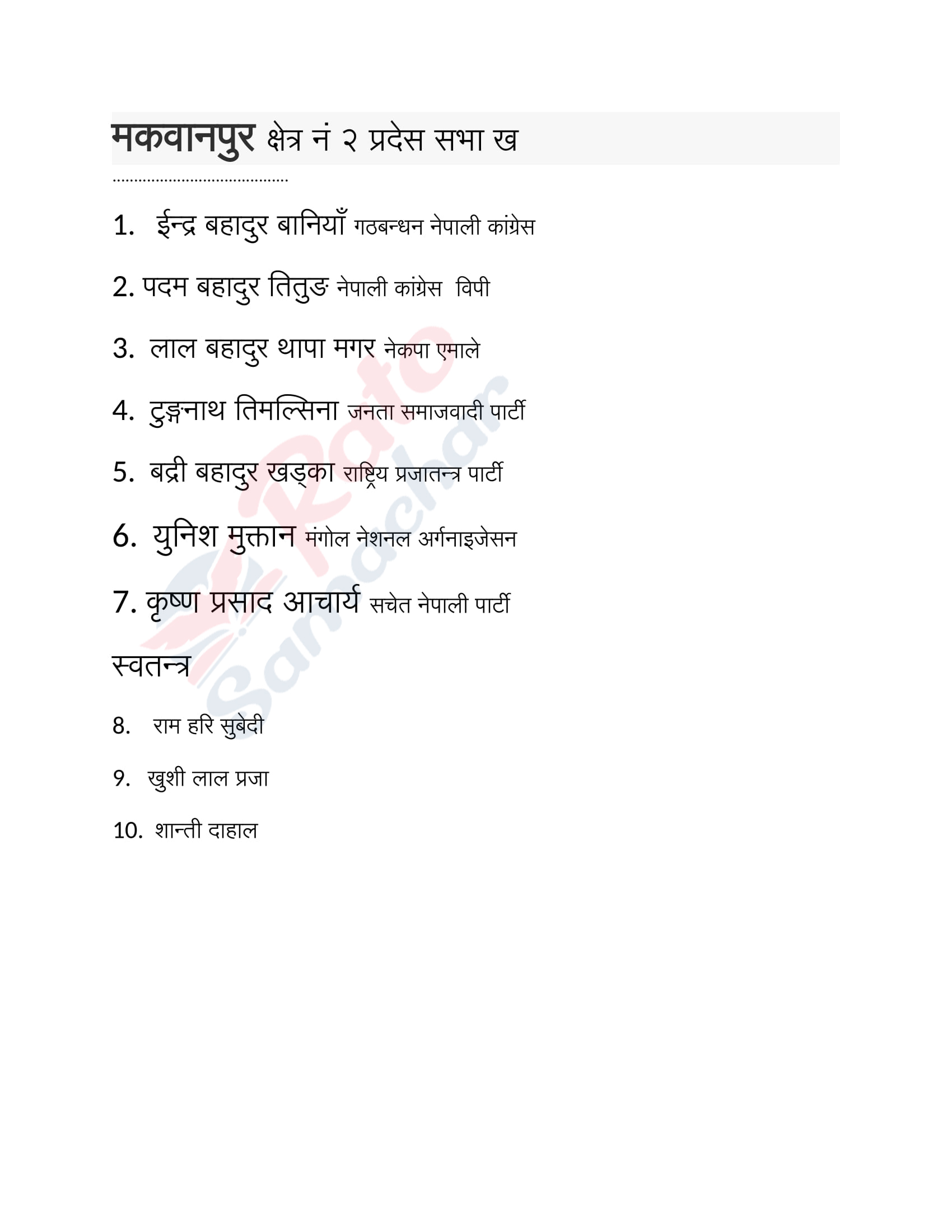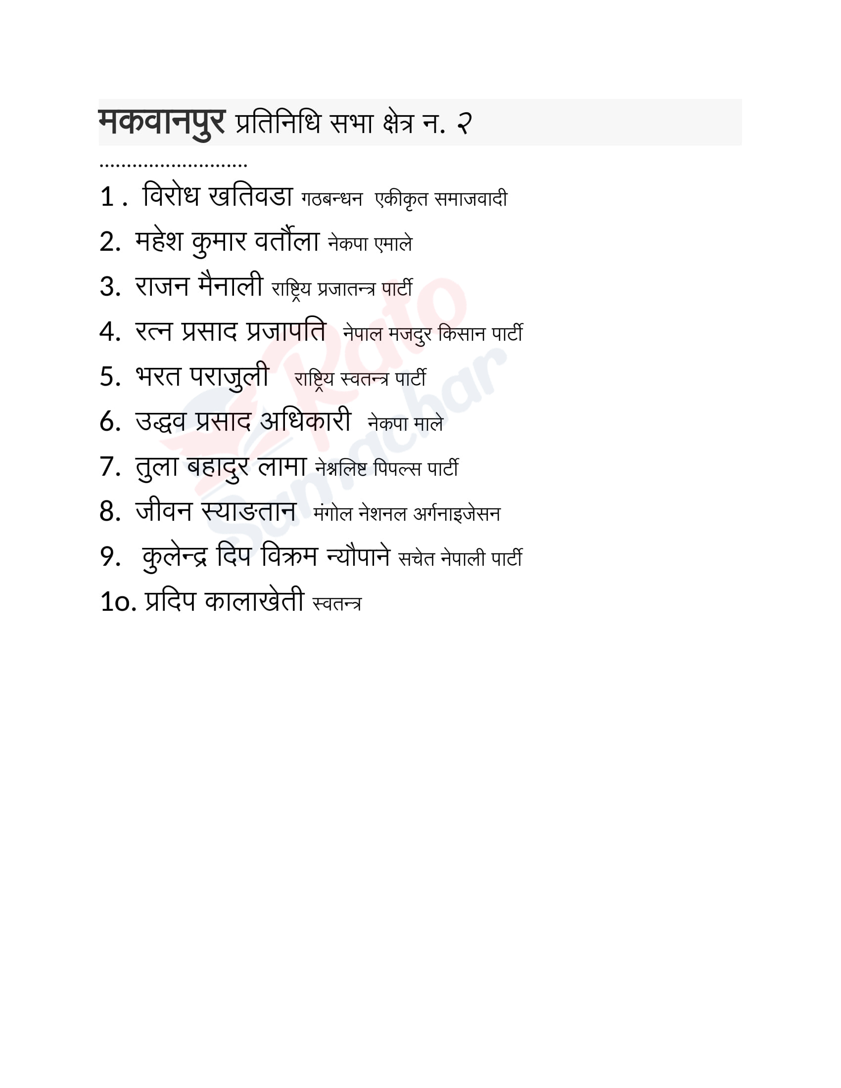 निर्वाचन : मकवानपुरमा उम्मेदवार