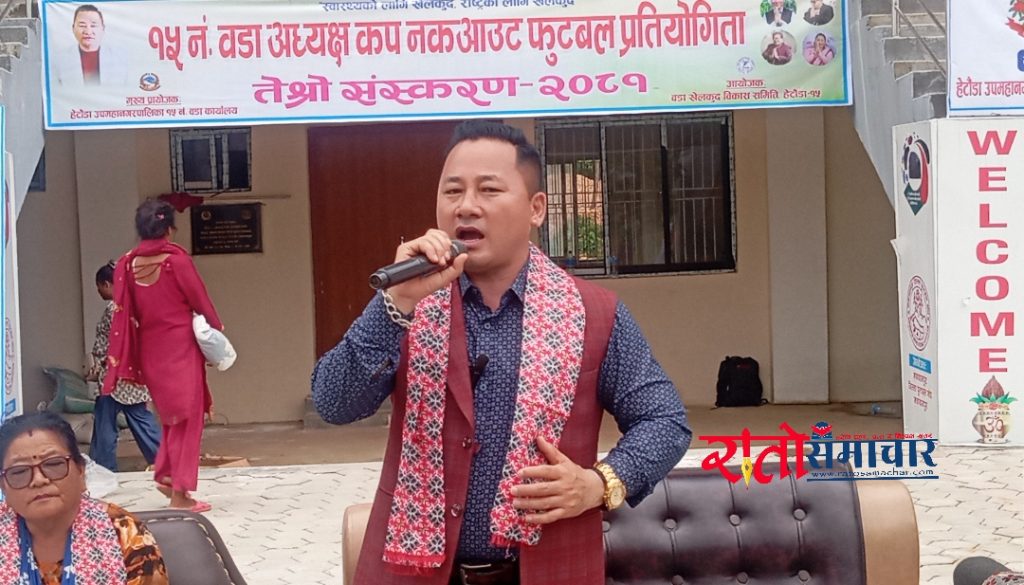 गौरिटार । हेटौंडा उपमहानगरपालिका वडा नम्बर–१५ का वडाध्यक्ष सुनिल मोक्तानले फुटबल खेलमार्फत हेटौंडा–१५ उत्कृष्ट प्रदर्शनी गर्ने वडाको रुपमा बताएका छन् । शुक्रबारबाट हेटौंडा–६,स्थित गौरिटार रंगशालामा सुरु भएको तेस्रो संस्करणको वडाध्यक्ष कप फुटबल प्रतियोगिताको उद्घाटन गर्दै आफ्नो वडाबाट फुटबल खेलमा लागेका खेलाडी राष्ट्रिय रुपमा पाएको बताए ।