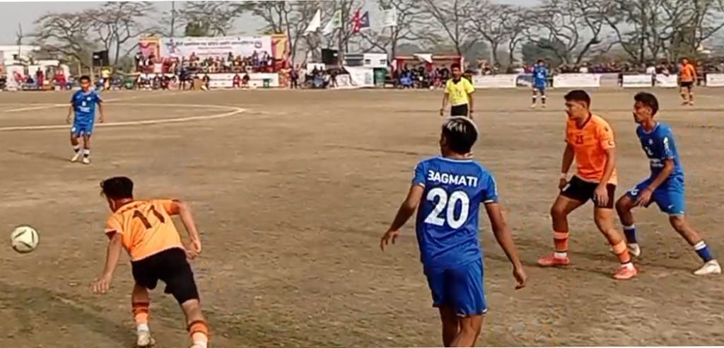 बागमती–८ स्थित जनता माध्यमिक विद्यालयको मैदानमा भएको खेलमा विभागीय टोली त्रिभुवन आर्मी क्लबले आयोजक बागमती खेलकुद विकास समितीलाई ४–० गोलले पराजित गर्दै समीफाइनलमा प्रवेश गरेको हो ।