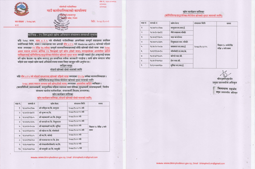 पालिका द्धारा एक सुचना जारी गर्दै गाउँपालिका अन्तर्गत माघ ४ र ५ गते सम्पूर्ण वडाहरुमा गएको पौष ४ र ५ गते खोपको पहिलो मात्रा लगाएका १२ देखि १७ वर्षका सम्पूर्ण बालबालिकाहरुलाई सोहि खोपको दोस्रो मात्रा तथा असार मसान्त सम्ममा कोभिड १९ विरुद्धको पूर्ण खोप दोस्रो मात्रा लगाइसकेका अग्रपंतीमा खटिने व्यक्तिहरुलाई कोभिड शिल्ड र एस्ट्राजेनेका र भेरोसेल खोपको बुस्टर मात्रालगाईने अध्यक्ष हिदम लामाले बताए ।
