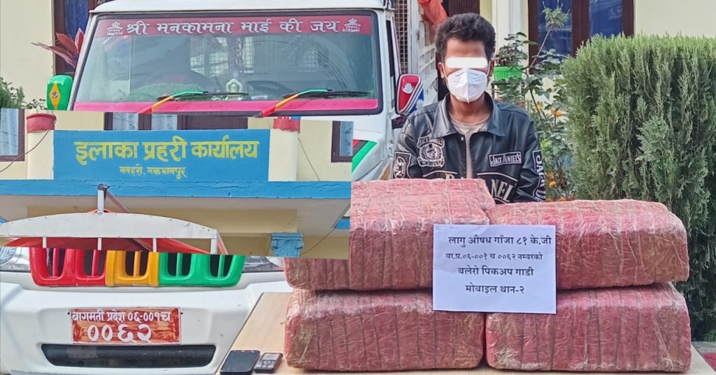 पक्राउ पर्नेमा मकवानपुरको कैलाश गाउँपालिका वडा नं. ४ का २२ वर्षीय छेटुप मकवानपुरको मनहरीमा ८१ किलो अवैध लागुऔषध गाँजासहित पक्राउ परेका हुन् ।