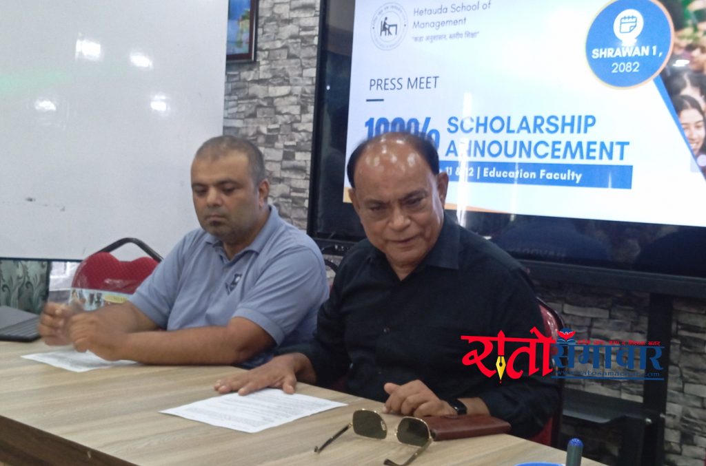 हेटौंडा । हेटौंडा–४,स्थित हेटौंडा स्कूल अफ म्यानेजमेन्ट एण्ड सोसिएल साइनस कलेजले निःशूल्क शिक्षाशास्त्र संकायको अध्यापन श्रावण ११ गतेबाट सुरु गर्ने भएको छ । गुणस्तरीय शिक्षाको आवश्यकतालाई मध्यनजर गर्दै कक्षा–११ र कक्षा–१२ का विद्यार्थीले निःशूल्क रुपमा पढ्न पाउनेगरी शिक्षाशास्त्र विषयको अध्यापन गराउनका लागेको हो ।