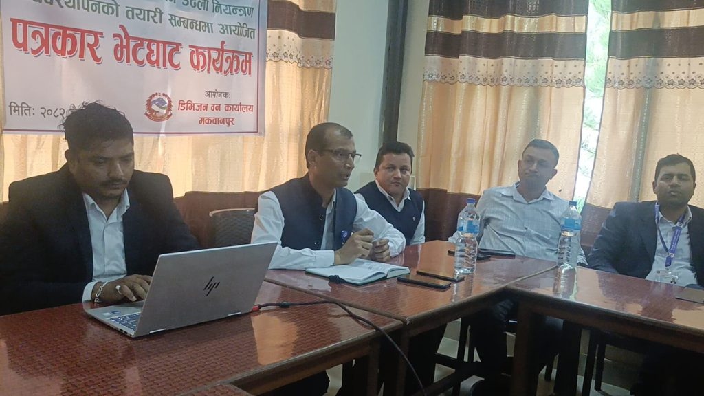डिभिजन वन मकवानपुरका प्रमुख राकेश प्रसाद चन्द्रवंशीको अध्यक्षतामा सम्पन्न कार्यक्रममा वन डढेलो नियन्त्रणका लागि एक हप्तासम्म सञ्चालन गरिएको विशेष अभियानबारे मंगलबार पत्रकार सम्मलेन मार्फत बताइएको हो ।