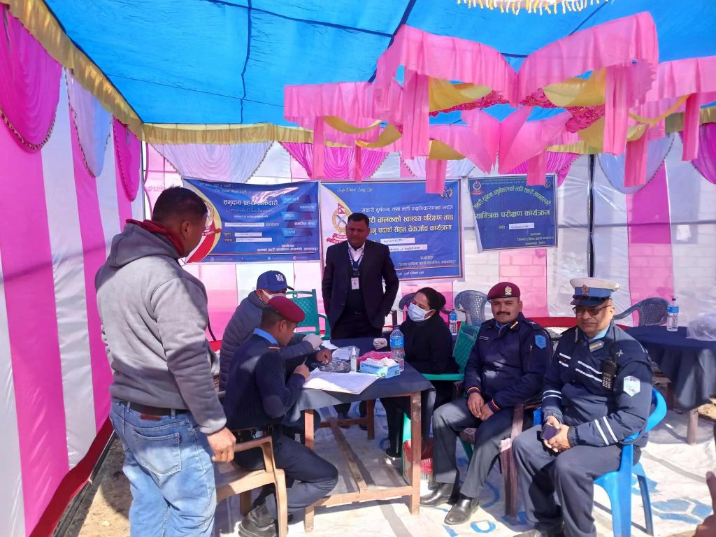 हेटौंडा। मकवानपुरको भीमफेदी गाउँपालिका अन्तर्गत रहेको हेटौँडा–भीमफेदी र कुलेखानी–काठमाडौँ छोटो दूरीको मार्गमा चल्ने सवारी चालकहरुको स्वास्थ्य परीक्षण र सवारी चालन अनुमति पत्रको सुरक्षाजाँच गरिएको छ । जिल्ला ट्राफिक प्रहरी कार्यालय मकवानपुर, जिल्ला प्रहरी कार्यालय मकवानपुर, जिल्ला स्वास्थ्य समन्वय कार्यालय मकवानपुर र इलाका प्रहरी कार्यालय भीमफेदीको भएको सवारी चालकको एक दिवसीय स्वास्थ्य परीक्षणमा प्राथमिक स्वास्थ्य केन्द्र भीमफेदीका प्राविधिकहरूको सहयोग रहेको थियो ।