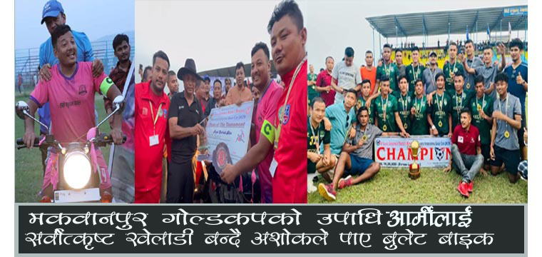 आर्मीले यसअघि २०७७ सालमा भएको तेस्रो मकवानपुर गोल्डकपमा आर्मीले उपाधि हात पारेको थियो । यसअघि तेस्रो संस्करणमा घरेलु टोलीकै अमिर श्रेष्ठले बुलेट पाएका थिए । हेटौंडाले यस पटक पनि उपविजेता भएको हो ।