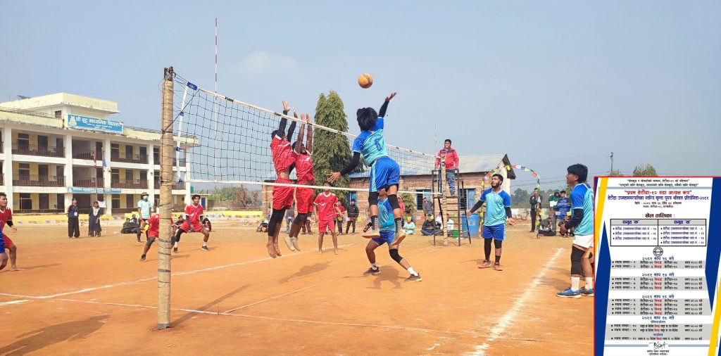 हेटौंडा -१० स्थित तुलसी मेहर मेमोरियल माध्यमिक विद्यालय तथा नारायणी कलेज मुख्य प्रायोजक रहेको भलिबल प्रतियोगिता हेटौंडा–१२ स्थित बुद्ध माध्यमिक विद्यालयमा भोलि शनिबार फाइनल खेल हुने छ ।
