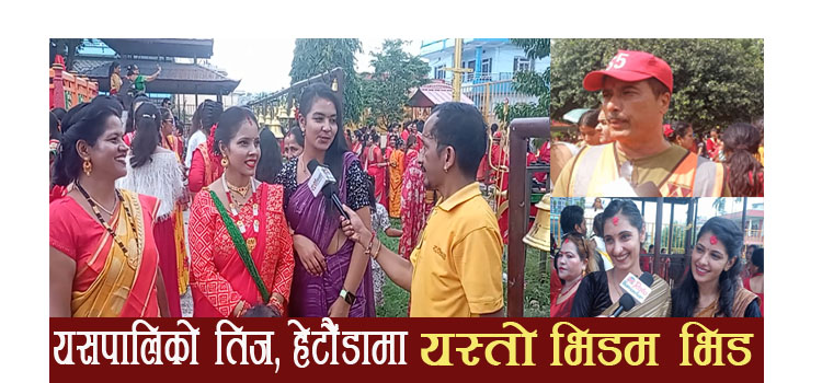 यसैक्रममा बिभिन्न स्थान संगै हेटौंडा ४मा रहेको पशुपति मन्दिरमा तिज मनउदै पुजा गर्न आउनेहरुको भिडमभिड थियो ।