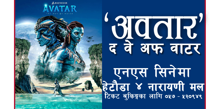 ‘अवतार’को पहिलो श्रृंखलाले विश्वव्यापी सर्वाधिक ग्रस कमाउने रेकर्ड समेत राखी सकेको वर्थिङ्टन, जोय साल्दाना प्रमुख भूमिकामा रहेको फिल्मलाई नारायणीमलमा रहेको एन एस सिनेमाको को शानदार पर्दामा हेर्न पाइने भएको हो ।