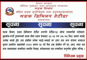 बागमती प्रदेशको राजधानी हेटौंडामा सडक डिभिजन कार्यालय हेटौंडाले गएको साउन १० गते हेटौंडामा सडक विस्तार गरिने ३५ दिने सूचना निकालेको विषय नै चर्चाको विषय बनेको छ ।
