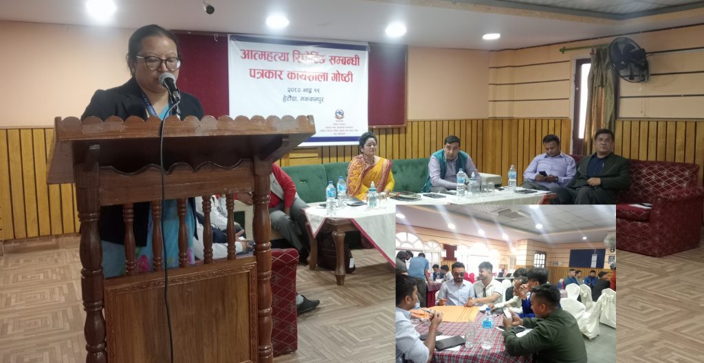बगमती प्रदेशको राधानी हेटौंडा उपमहानगरपालिकामा आत्महत्या रिपोर्टिङ्ग सम्बन्धी पत्रकार कार्यशाला गोष्ठीको आयोजना गरिएको छ।