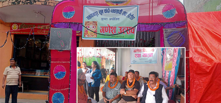 सुन चाँदी व्यवसायी संघका अध्यक्ष पवन कुमार शाक्यको सभाध्यक्षता हेटौंडा उपमहानगर-२ का वडाध्यक्ष विष्णु गोपाल महर्जनको प्रमुख आतिथ्यतामा सम्पन्न समापन कार्यक्रमलाई रथ यात्रा सहित हेटौंडा १ स्थित राप्ती तटमा गणेश विसर्जन गरेर सम्पन्न गरिएको हो ।