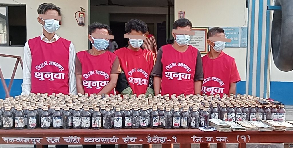 मकवानपुर प्रहरी प्रमुख एसपी सिताराम रिजालको नेतृत्वमा खटिएको प्रहरी टोलेले नगद रकम ८ लाख रकम लागूऔषध सहित आइताबार राती ५ जनालाई पक्राउ गरेको हो ।