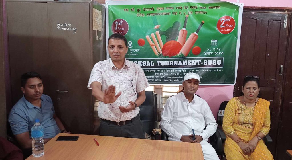 हेटौंडा उपमहानगरपालिका वडा–नम्बर ४ मा जिल्ला स्तरीय खुल्ला क्रिक्सल प्रतियोगिता हुने भएको छ ।